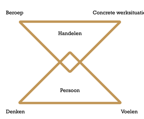 Het gaat om leren wie jij bent in de context van je werk en jouw handelen als professional. Ik ondersteun je om te leren integreren van het denken op twee niveaus. Het eerste niveau is de integratie van jouw denken, voelen en handelen. Het tweede niveau is de integratie van jou als persoon, je beroep en de werkcontext.